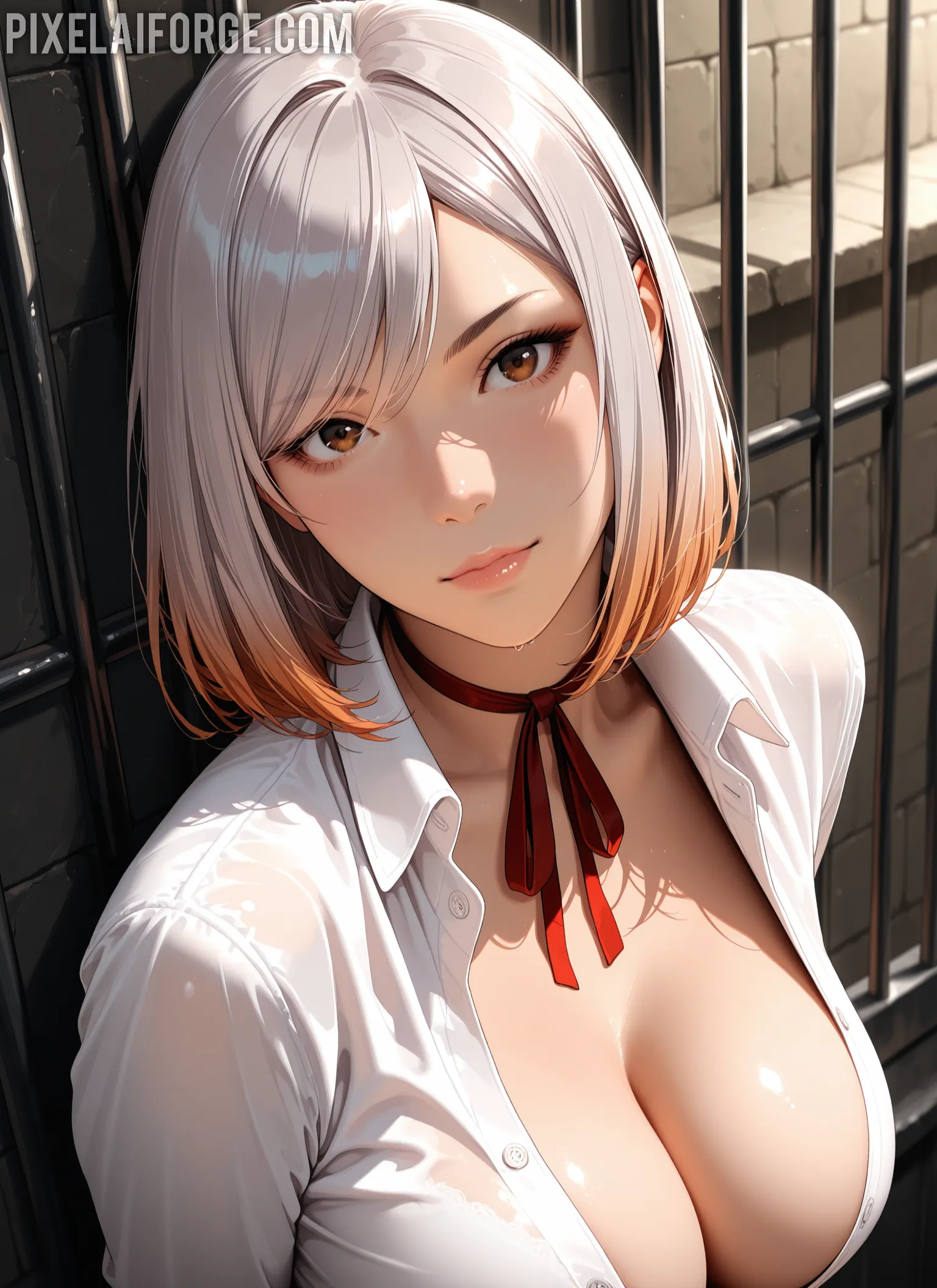- Captura del estilo visual de Prison School con enfoque en comedia y ecchi.